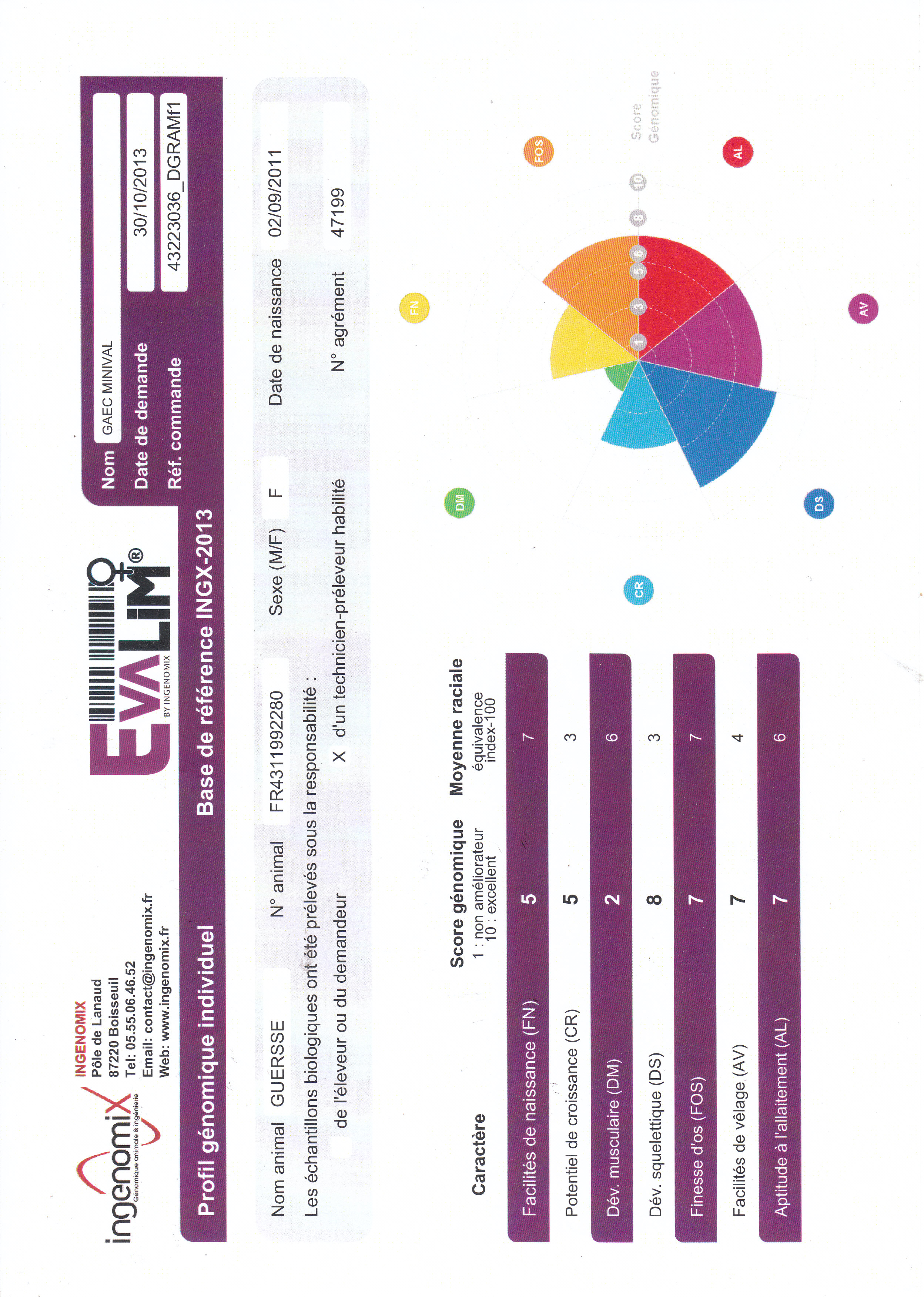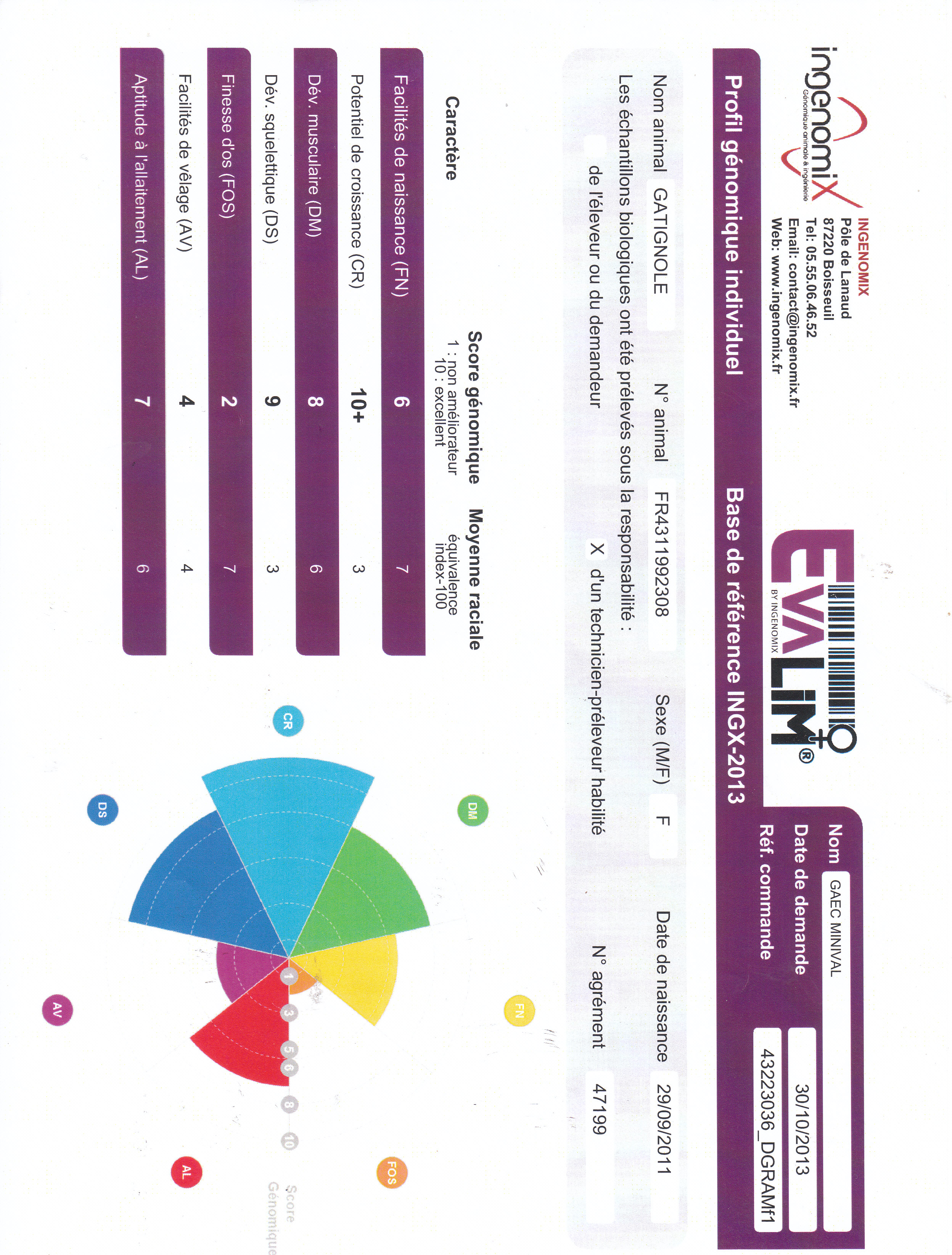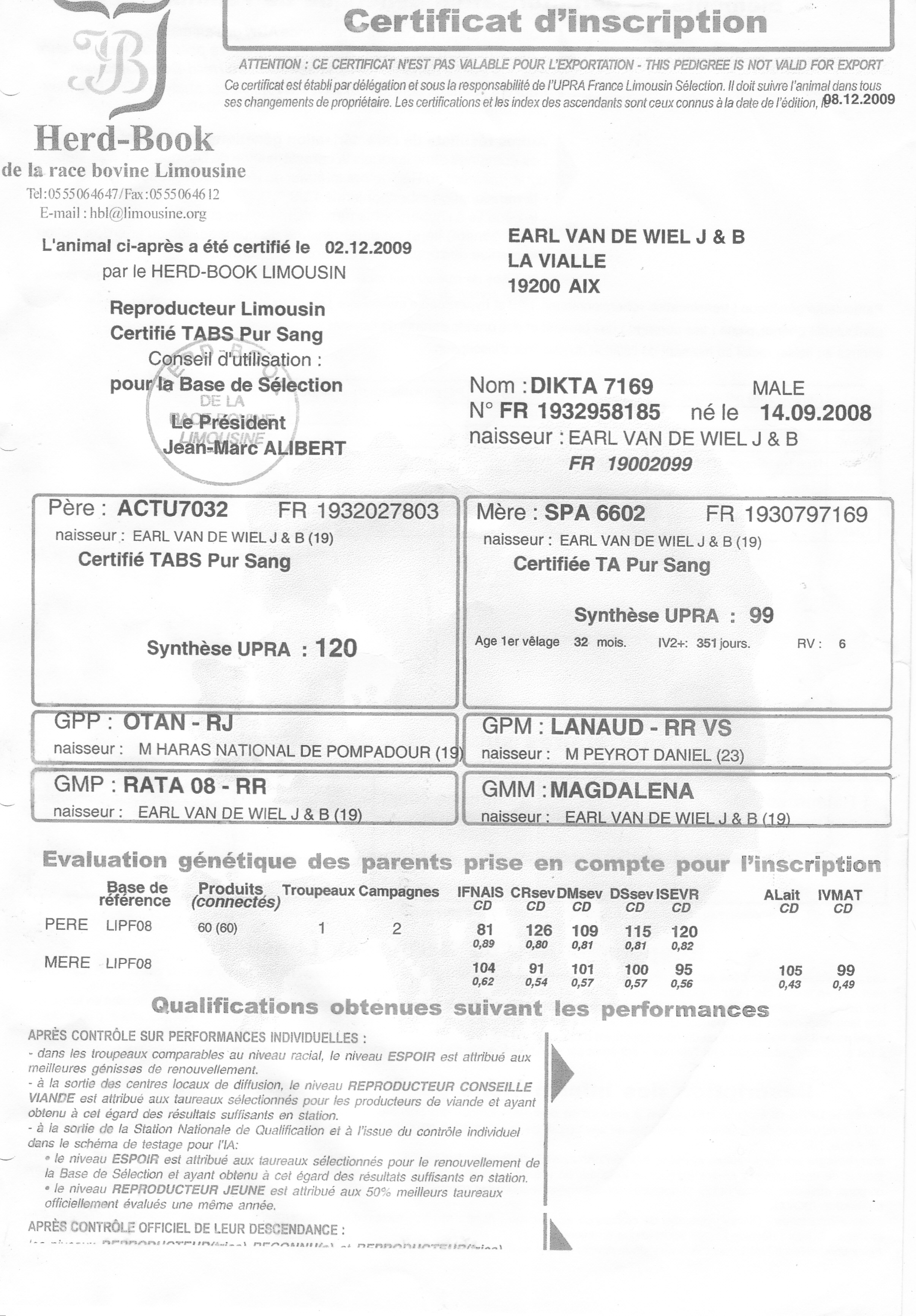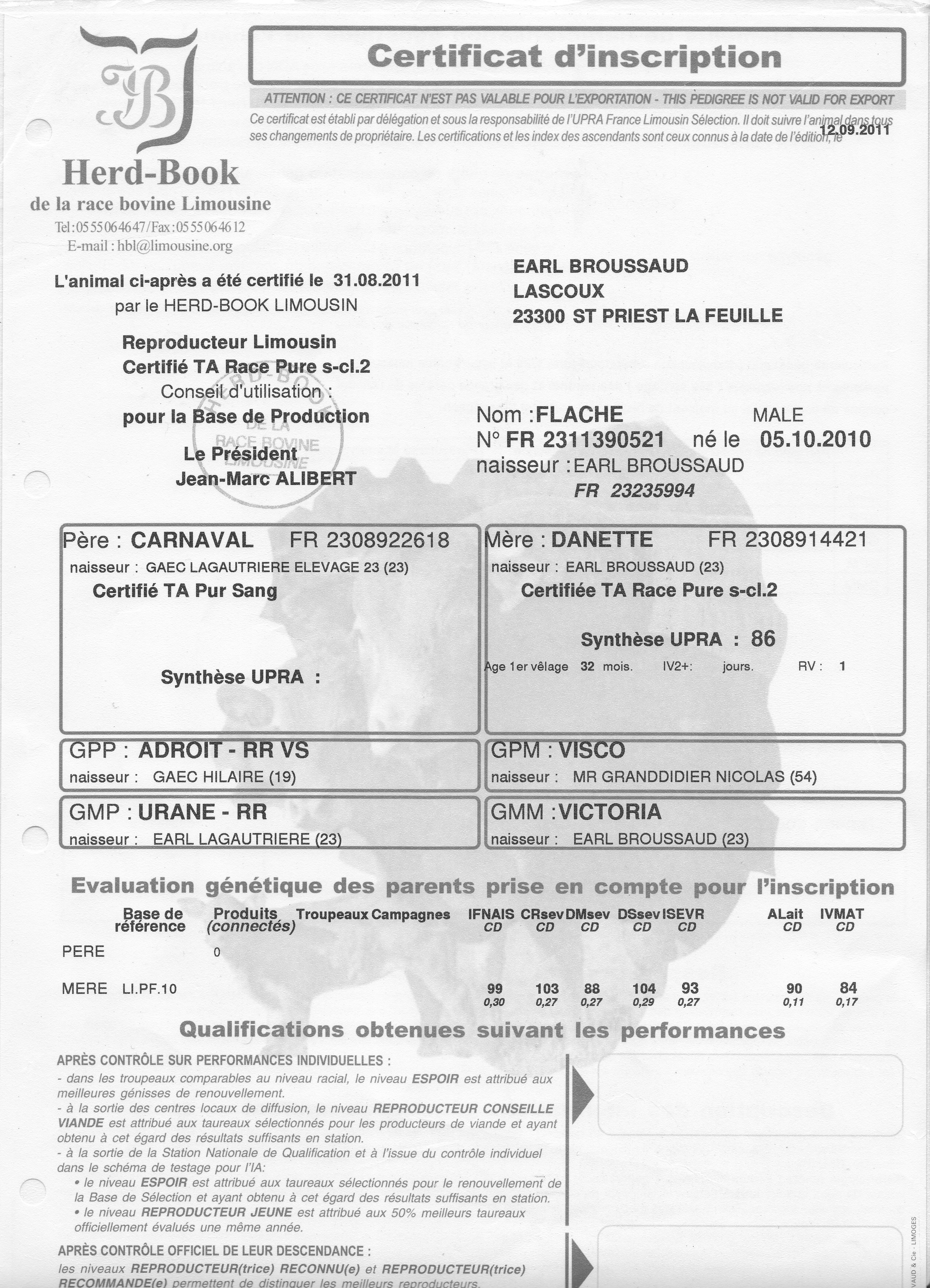 Il est issu d'un taureau recommandé : Actu et d'une fille de Lanaud un taureau de l'élevage Peyrot (23).